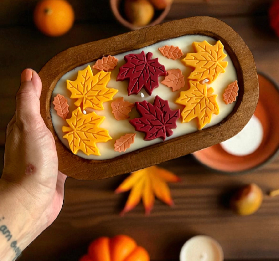 Fall has a way of making everything feel more intentional, more beautiful, more connected to nature. That's exactly what inspired this autumn leaves candle in its gorgeous wooden vessel.Whether you're creating a cozy reading nook, setting the mood for dinner with friends, or just wanting to feel that fall magic on a random Tuesday, this candle transforms any moment into something special. Because the best things in life aren't just functional - they're beautiful, meaningful, and made with love!