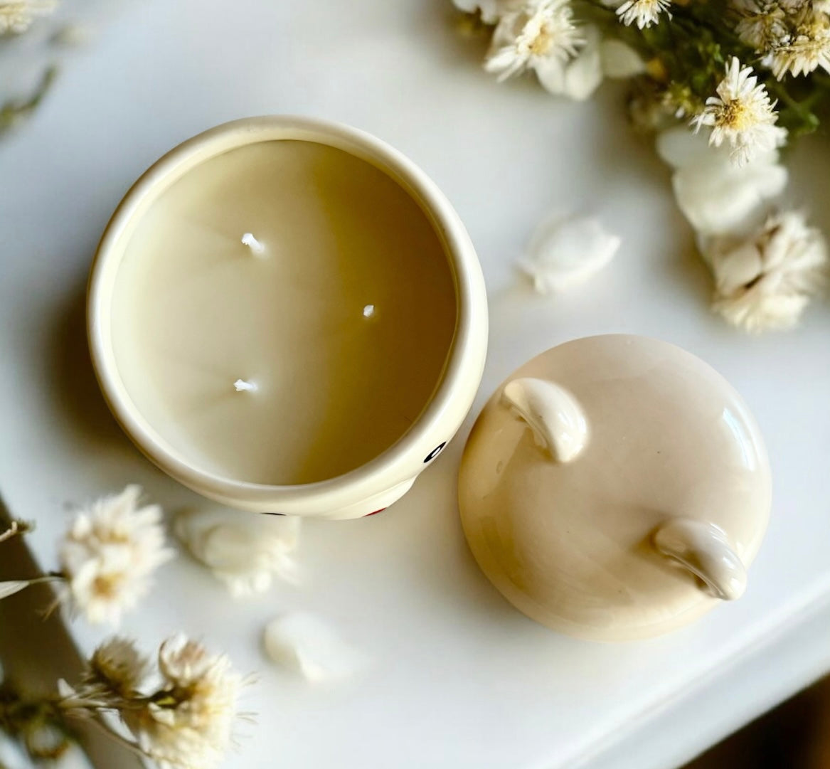 Meet our adorable bear jar candle—complete with a matching lid and triple the glow with 3 cotton wicks!