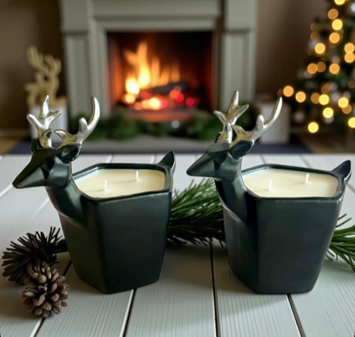 The striking black and silver color palette creates a dramatic, refined aesthetic that stands out from traditional holiday décor. The graceful deer silhouette adds that perfect touch of nature-inspired charm, while the metallic silver details catch the light beautifully. Light it to fill your space with festive fragrance while maintaining that sleek, modern edge. This candle proves that Christmas can be chic, sophisticated, and still absolutely magical.
