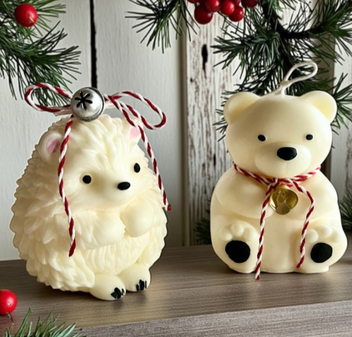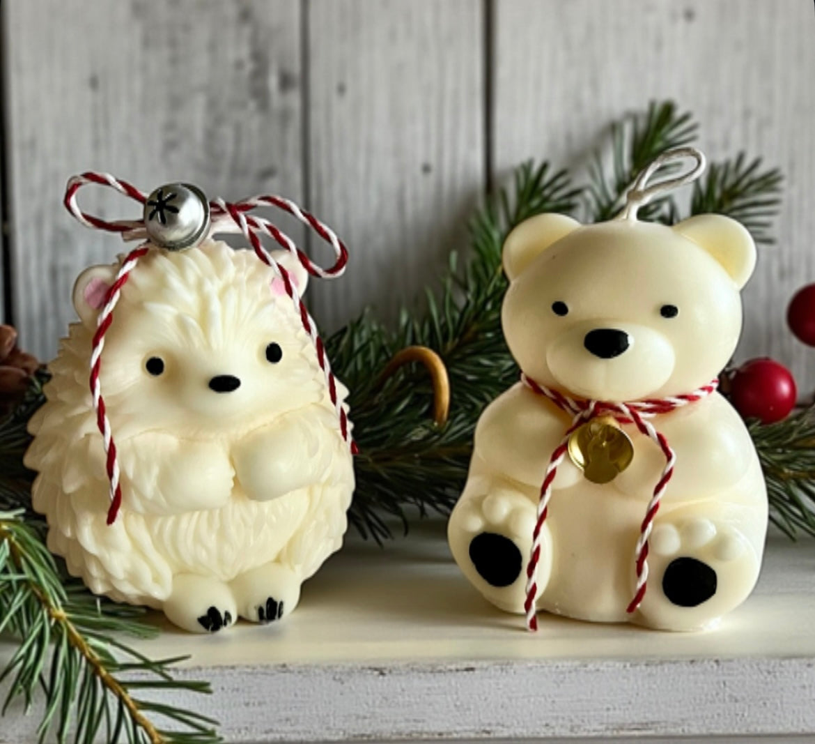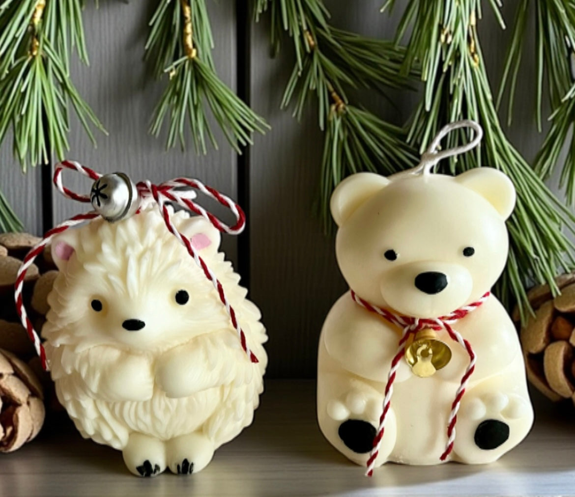 All dressed up for the holiday. This candle set is pure holiday joy in miniature form. Two adorable candles featuring precious little animals decked out in their festive best!