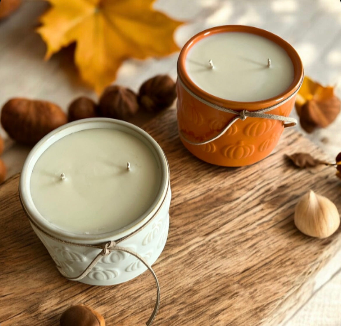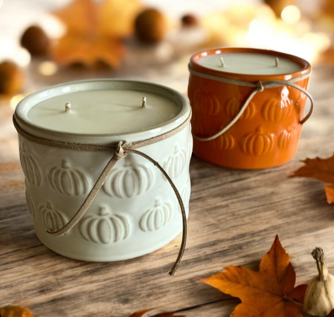 Can't decide between classic orange or chic white? Why not both! Our pumpkin vessel candles come in the perfect fall duo - traditional orange for that classic autumn vibe and white for modern farmhouse elegance. Mix and match or pick your favorite - either way, you're bringing serious pumpkin perfection home!