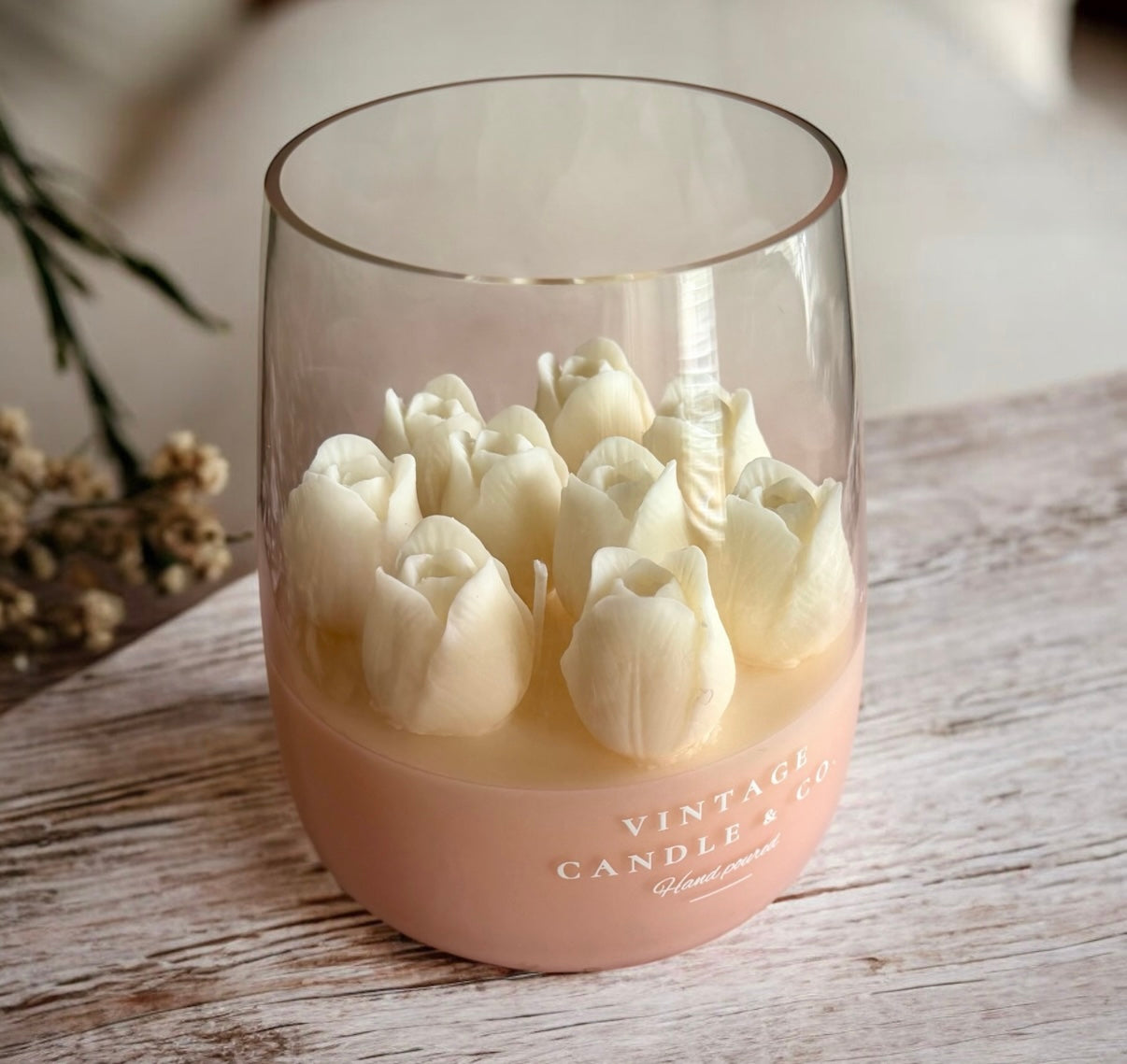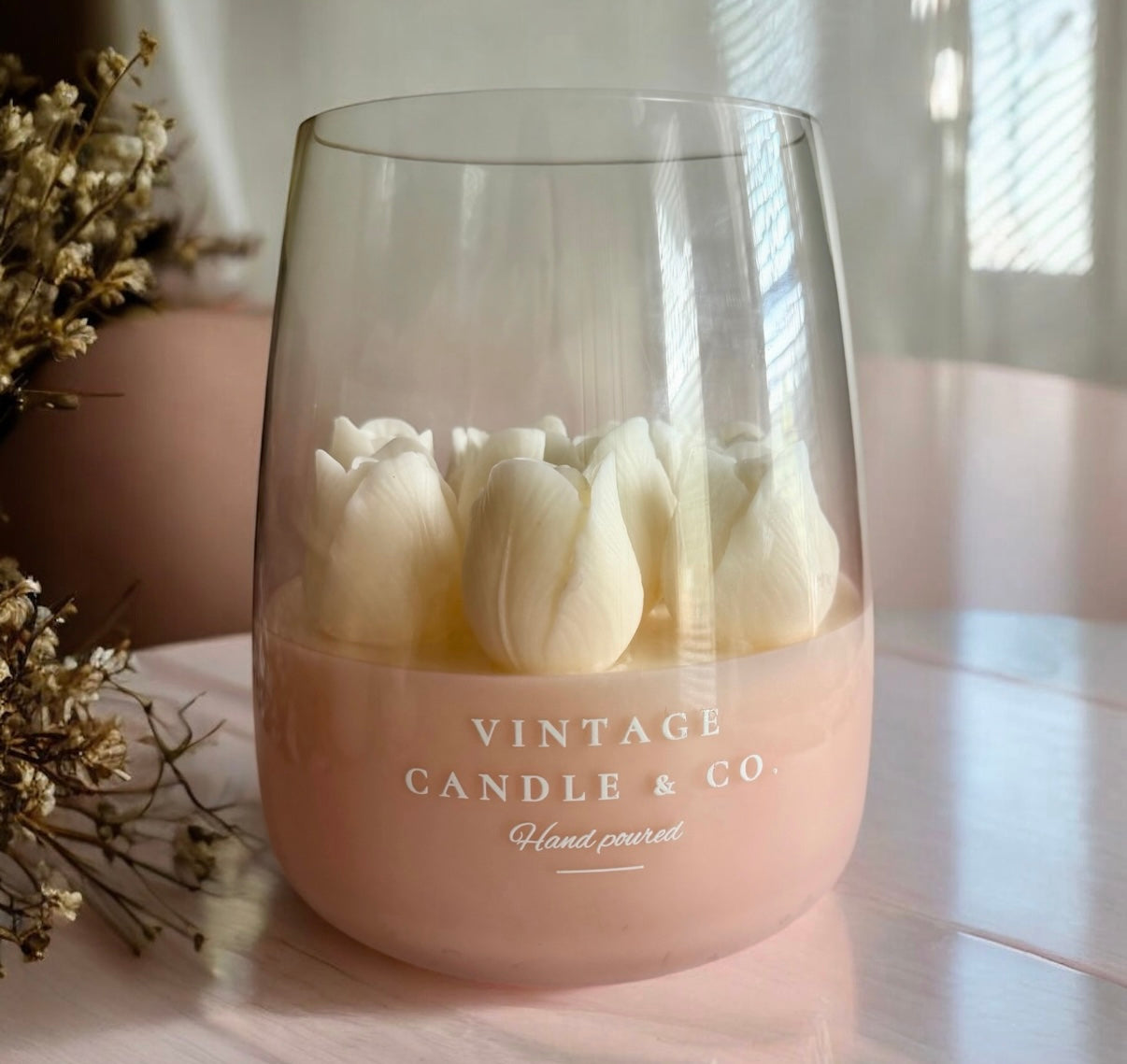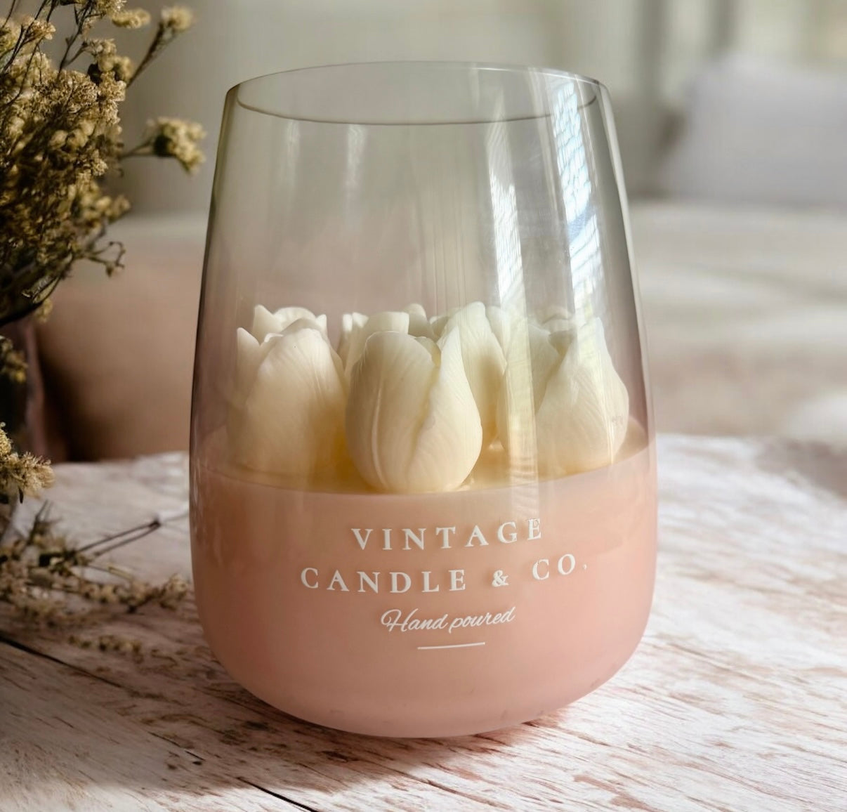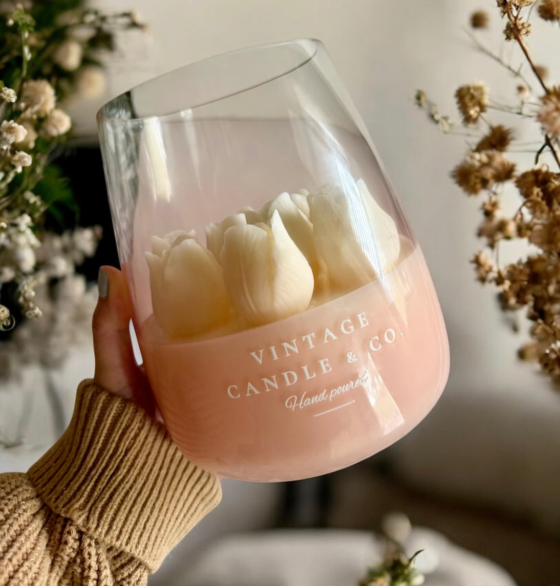 Introducing our XXL Tulips Candle - because sometimes bigger really IS better! This stunning statement piece brings the beauty of a fresh tulip bouquet into your home, minus the wilting.